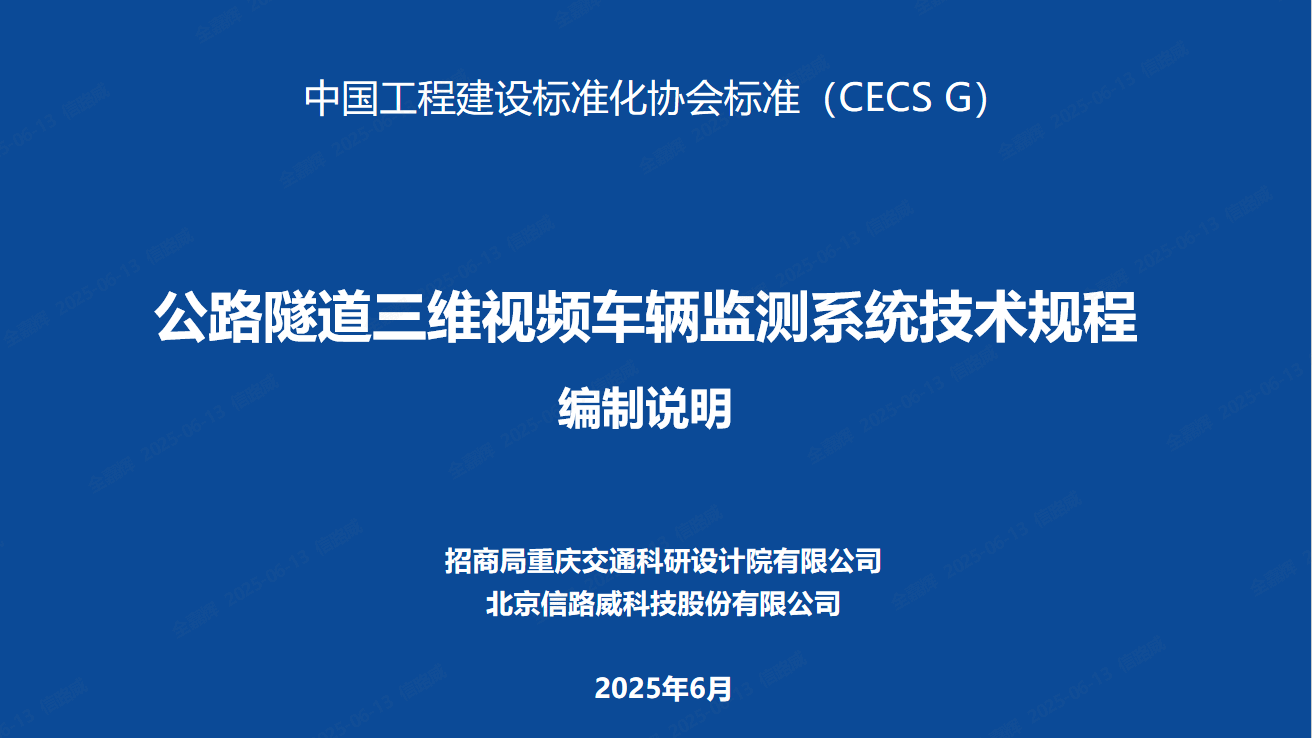 本次會議旨在通過編制《公路隧道三維視頻車輛監(jiān)測系統(tǒng)技術(shù)規(guī)程》團(tuán)體標(biāo)準(zhǔn),為“公路隧道三維視頻車輛監(jiān)測系統(tǒng)”的建設(shè)、驗(yàn)收、運(yùn)行使用、維護(hù)提供技術(shù)依據(jù),以提升公路隧道管理部門對隧道內(nèi)通行車輛的管控能力以及安全應(yīng)急管控能力。