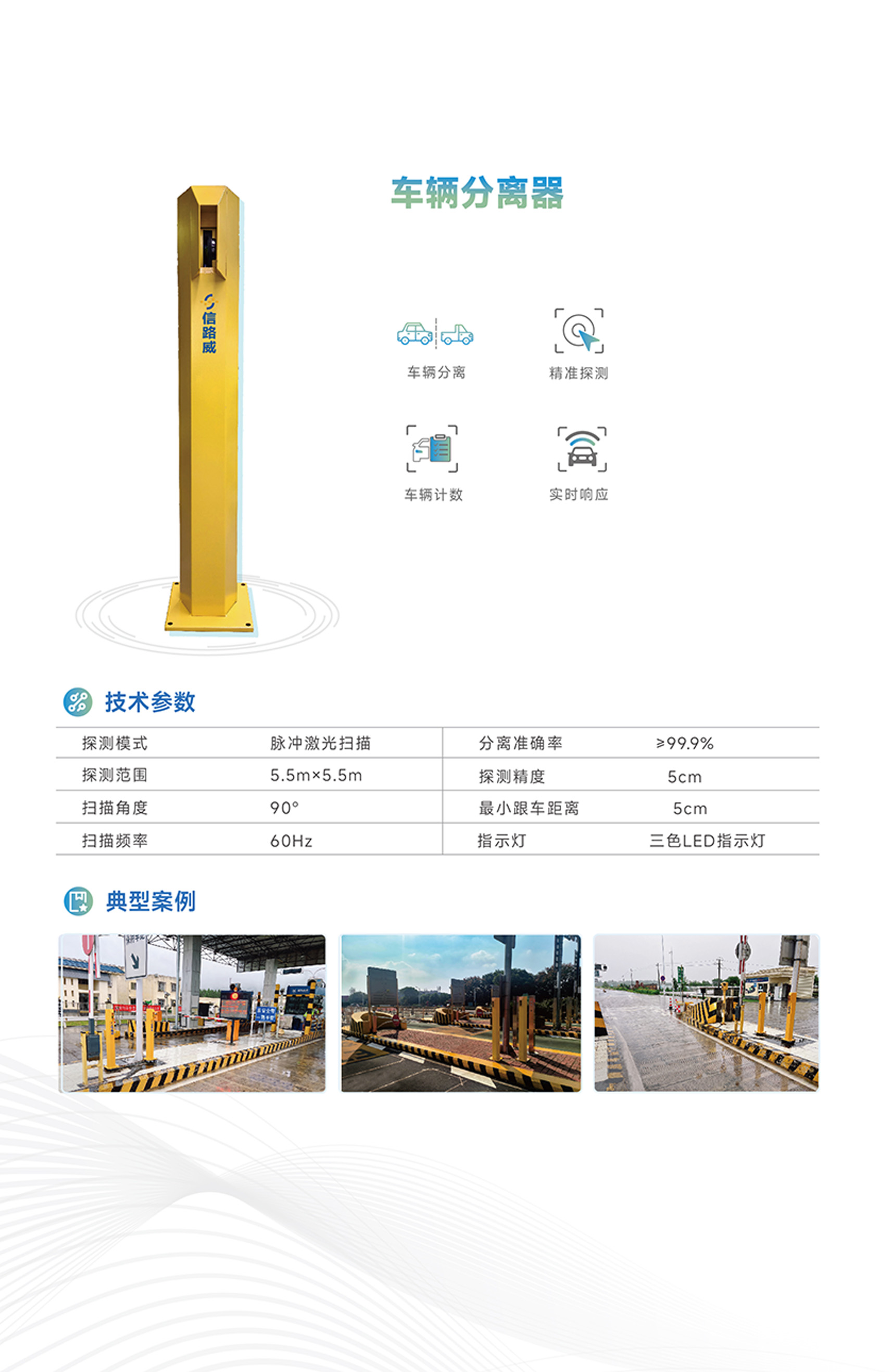 激光車輛分離器采用高頻紅外激光,集成激光發(fā)射裝置和激光接收裝置。設(shè)備基于TOF激光測(cè)距原理,通過向車道發(fā)射高頻紅外激光,實(shí)時(shí)檢測(cè)車輛通過時(shí)的距離變化,實(shí)現(xiàn)對(duì)車輛進(jìn)入時(shí)間和離開時(shí)間的精準(zhǔn)測(cè)量,具有高精度、抗干擾、適應(yīng)性強(qiáng)等特點(diǎn),可廣泛應(yīng)用于車輛分離、車輛計(jì)數(shù)等場(chǎng)景。